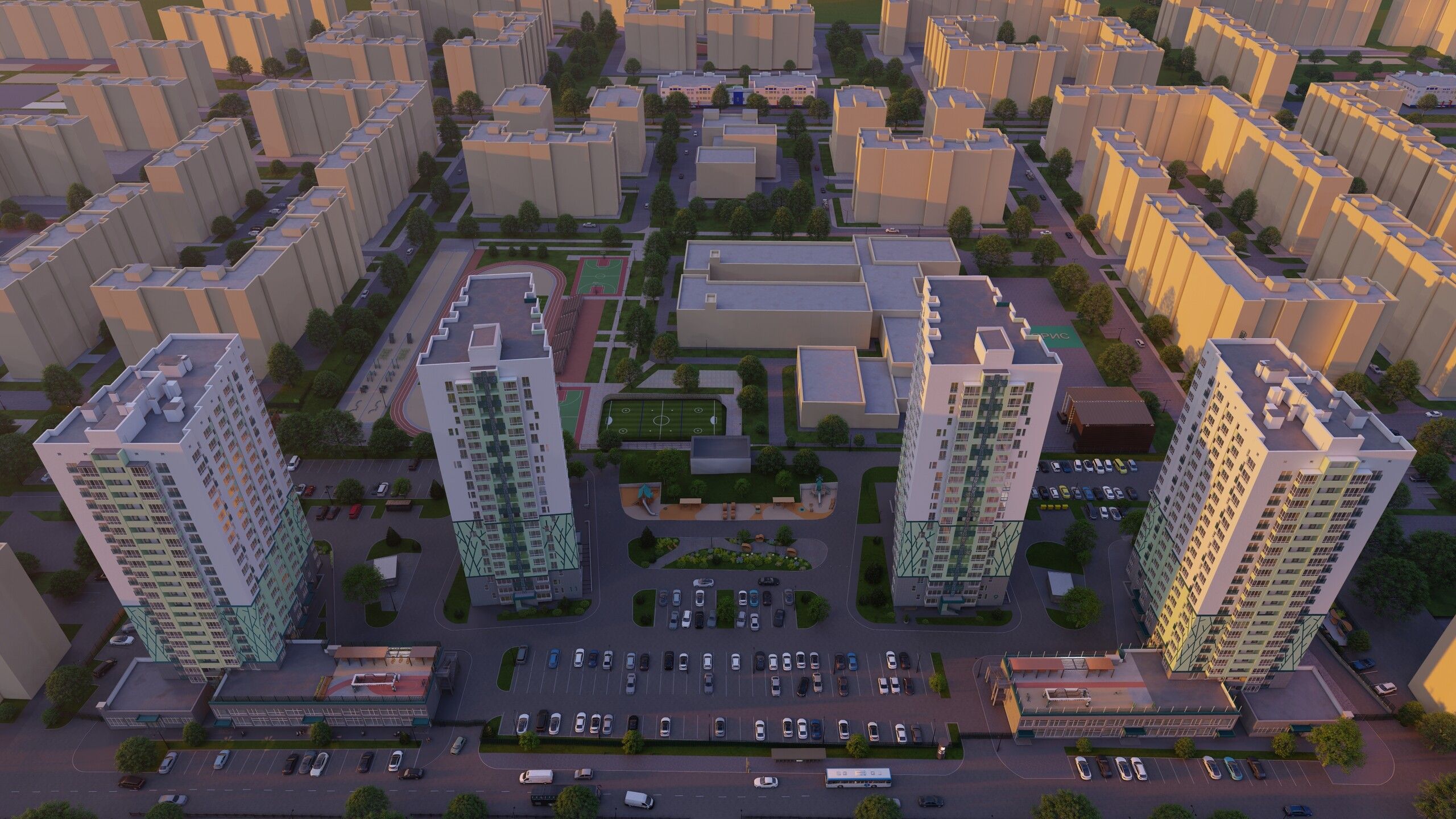 Квартал "Мята" состоит из четырёх монолитных домов, которые внесут динамику в архитектурный облик бульвара Героев Отечества за счёт высотных доминант, оживят локацию через наполнение первых этажей зоной стрит-ретейл.